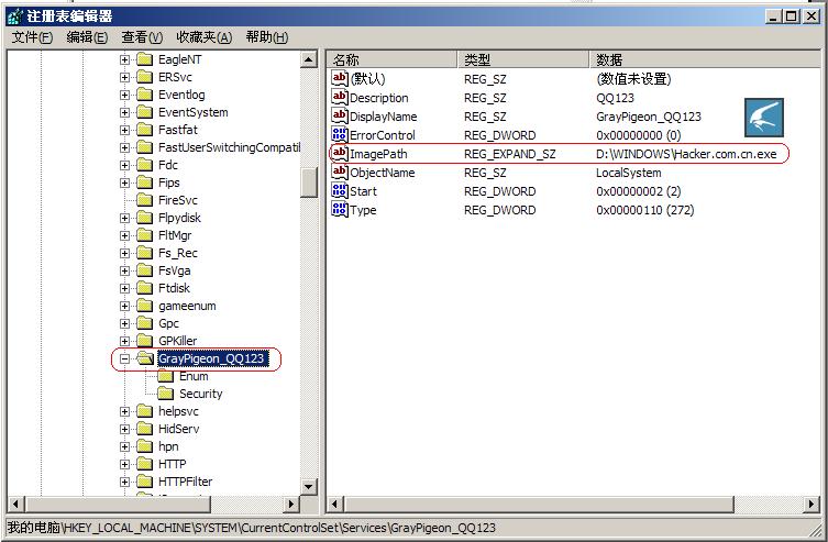 O23 - Service: GrayPigeon_QQ123 - Unknown owner - D:\WINDOWS\Hacker.com.cn.exe (file missing)