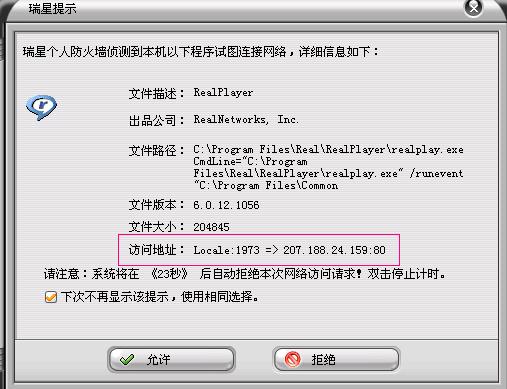【求助】我的RealPlayer是不是中毒了?防火墙显示的有一行看不明白