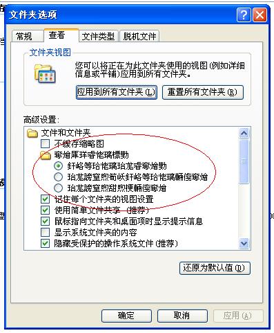 系统文件夹选项内出现乱码字体,不知是何原因,请各位大侠指点,谢谢!