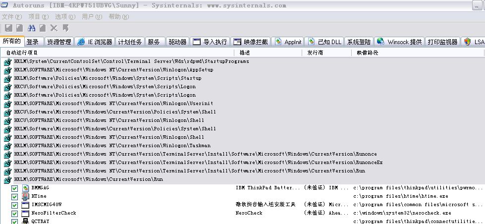 【下载】autoruns 8.51中文汉化版 扫描系统日志的程序