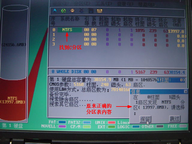 其系统是XPSP2,40G的硬盘,两个分区,一个NTFS(C盘),一个FAT32(D盘)。故障现象是开机时系统引导失败。系统报错:invalid partition table。