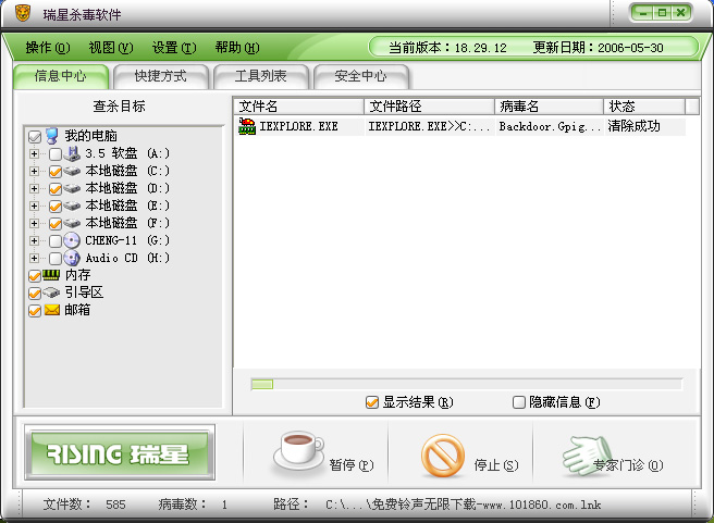 1、每次查毒都会出现此毒,显示的是清除成功,不等一分钟再次查毒时又出现此毒!如图:
