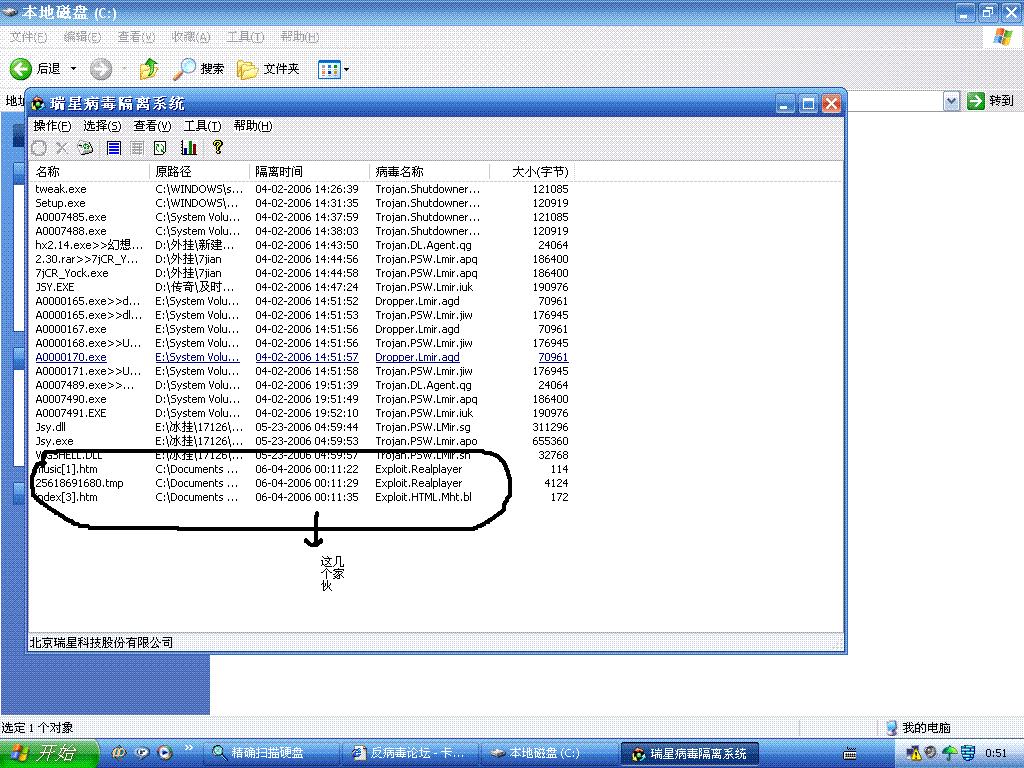 最近病毒隔离系统.又多了几个病毒文件~~但是瑞星也没查出病毒呀~正长吗??