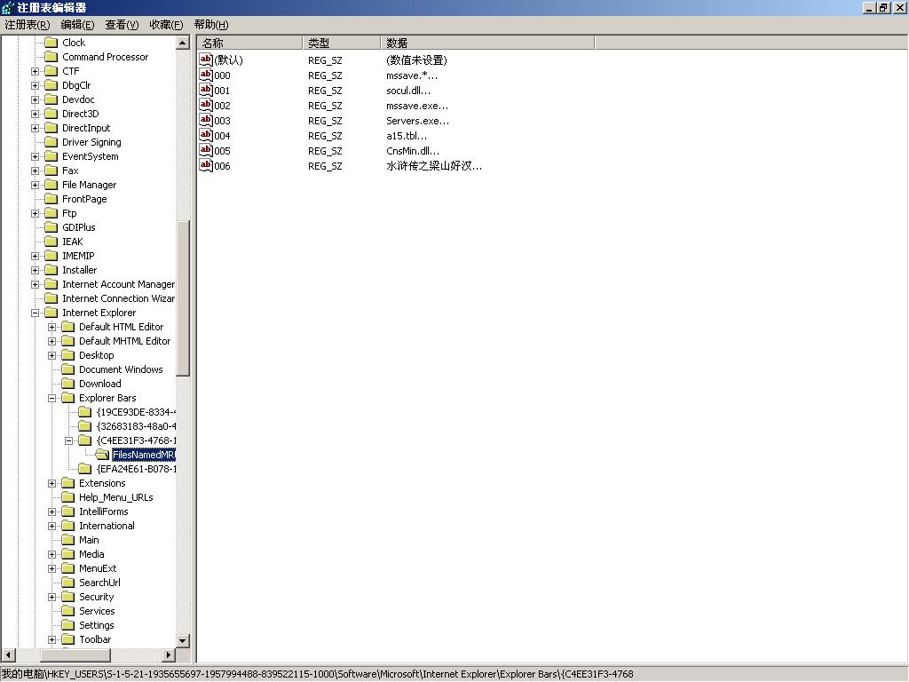 你好,我就是昨天晚上让你远程控制的那个小弟,你让我删mssave.exe文件,我说没找到!今天我在注册表发现它了,还发现socul.dll文件,可是我昨天已找你指示删了它了?你看看图