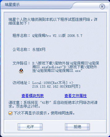 今天我和往常一样打开保姆照顾我的宠物,然后防火墙了,显示了如下图所示的内容,