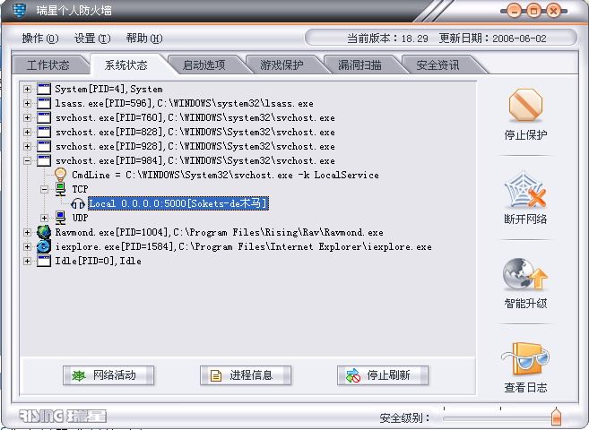 是不是进程里有木马在运行,用瑞星扫描并没有发现病毒或木马呀?