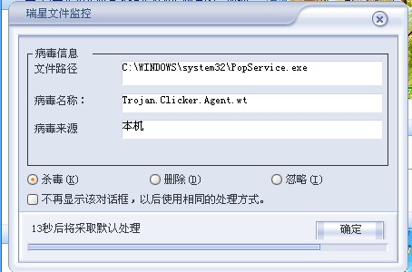 我一开IE,就自动弹出小框框提示有病毒“Trojan.Clicker.Agent.wt”~~我点杀毒或者删除都没用,下次开IE还会同样出这个。。。我用瑞星杀毒,扫描不到。我找到那文件夹定点杀毒,也杀不到。下次开IE照样会出。。。怎么办- -救下命吧。。帖几个图可能清楚点。~我不会弄日志- -就帖图吧~