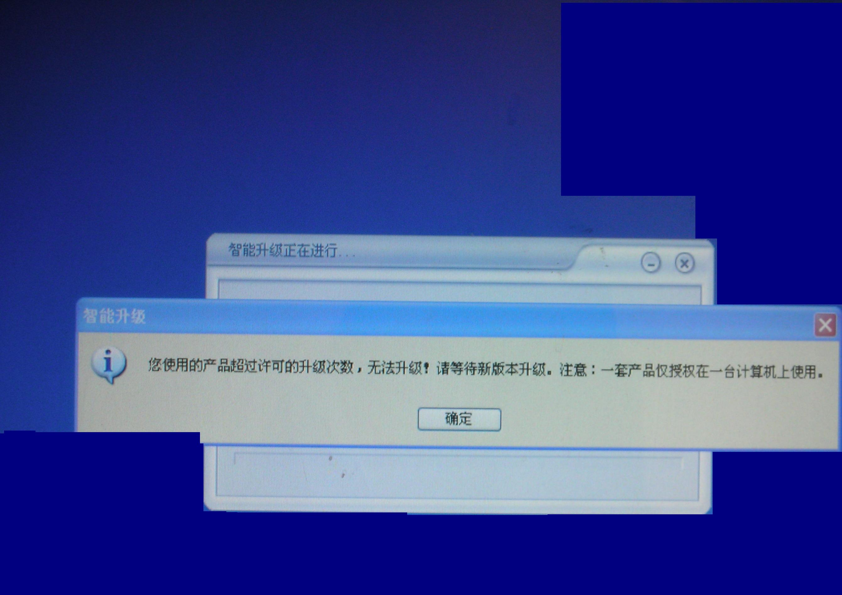 你这是ID到期了,或者是升级次数过多了!要不是多人用一套杀软