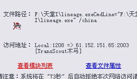 我今天进游戏 防火墙就出现这个呀,以前进游戏 好象没出现 后面为木马那2个字,图片在下面,如果有需要的话,我可以扫描日志发上来呀, 求大家了 帮小弟看看 。lineage.exe 是天堂游戏名称,下面怎么出现木马2字呀