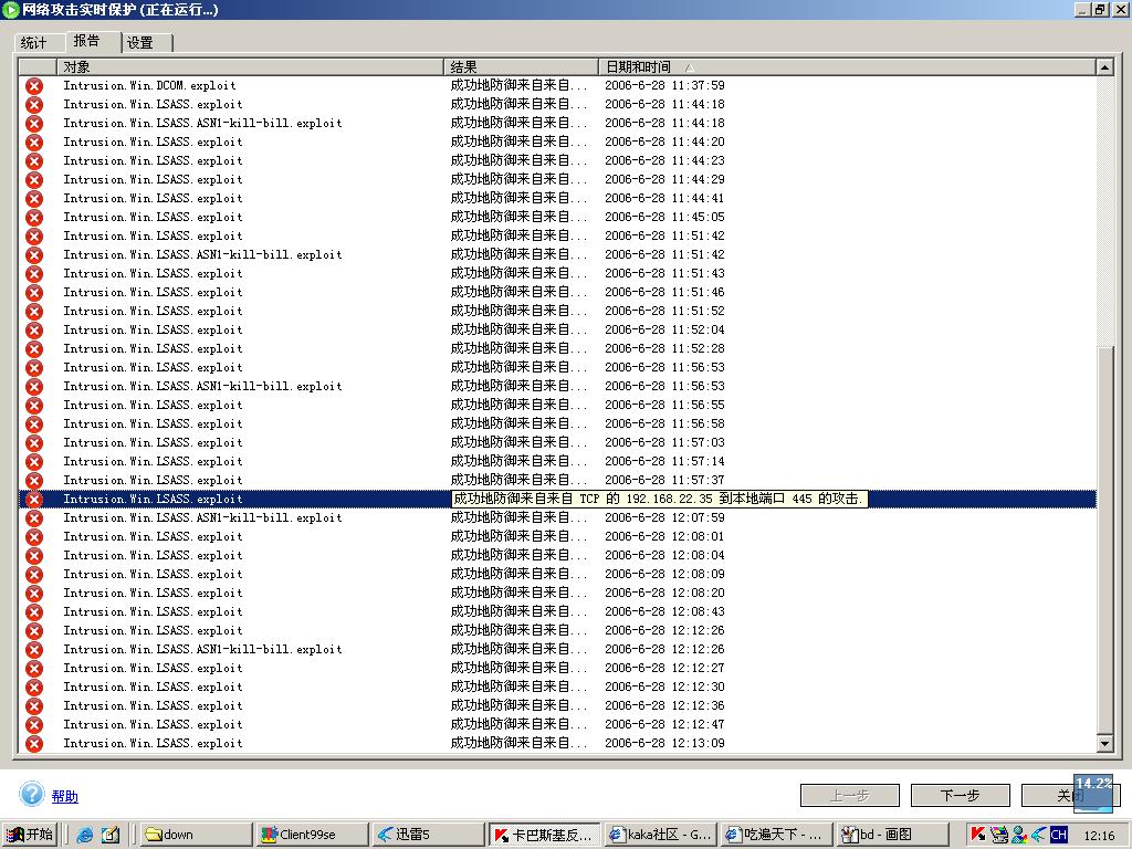 图:今天卡巴显示遭到攻击,无奈啊,怎么搞定他,,,,,