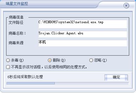 常常打开网页的时候出现瑞星监控提示有病毒,但每次都杀不掉。