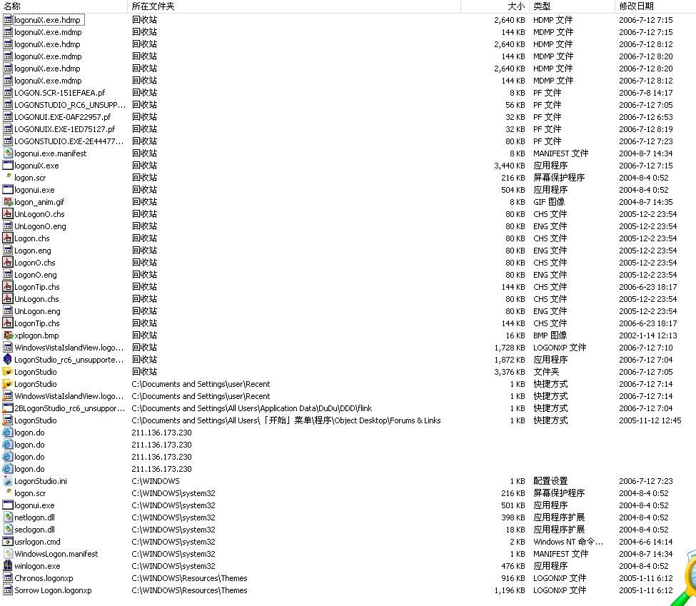 在system32中发现有longonui。exe  netlogon.dll  seclogon.dll  usrlogon.cmd