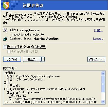 ⒈结束进程C:\WINDOWS\system\ciozpyfau.exe