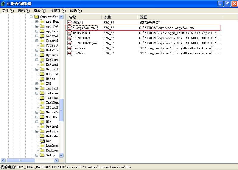 展开HKEY_LOCAL_MACHINE\SOFTWARE\Microsoft\Windows\CurrentVersion\Run