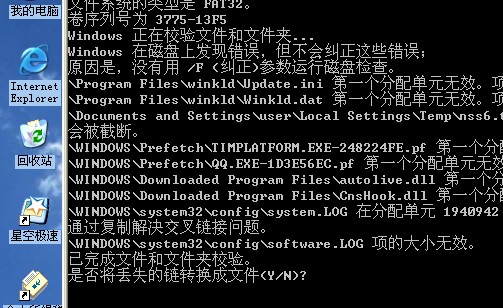 高手帮我看下日志吧    前几天杀毒未果 现在开机有了这样的错误 说是损坏文件,要我运行Chkdsk  然后我运行之 截图如下