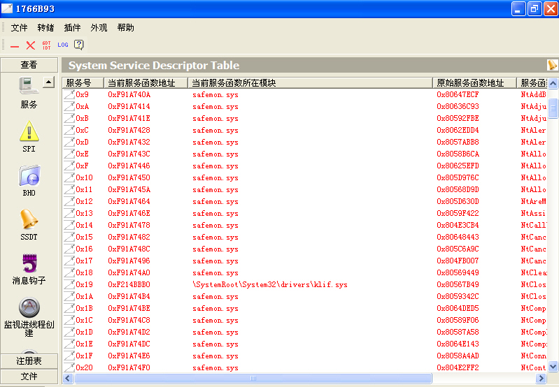 下图是我的SSM和卡巴斯基在SSDT列表中的项目