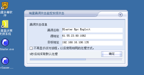 并且服务器已经打了SP4补丁。刚才又装了冲击波补丁,振荡波补丁。但是瑞星监控还是提示这张图的情况,提示有攻击。为什么啊。