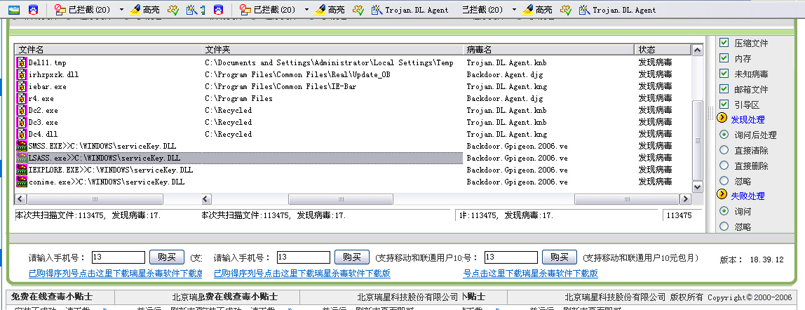 病毒破坏了系统,瑞星防火墙也自动关闭!