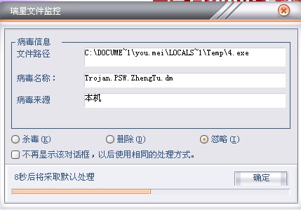 【风的轨迹01的贴子】出现下列病毒,将近每隔30秒出现一次,在安全模式在用瑞星杀毒软件和橙色8月专杀后提示杀毒成功,开机后又出现病毒,请客服提供有效的解决方法!