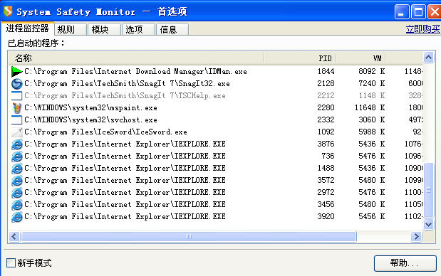 2、植入系统运行后,每进行一步其它操作(如:用SnagIt截图),进程列表中增加一个IE进程。但此时IE浏览器并未打开(图2)。