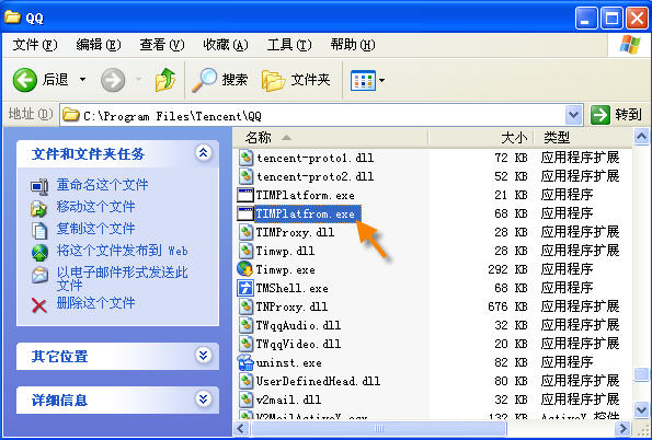 C:\Program Files\Tencent\QQ\TIMPlatform.exe(注意:这个目录下居然有两个完全同名的TIMPlatform.exe,只是创建日期不同。删除那个最近创建的)。