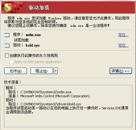 Object:C:\WINDOWS\system32\drivers\ksld.sys——wdm.exe加载驱动文件。