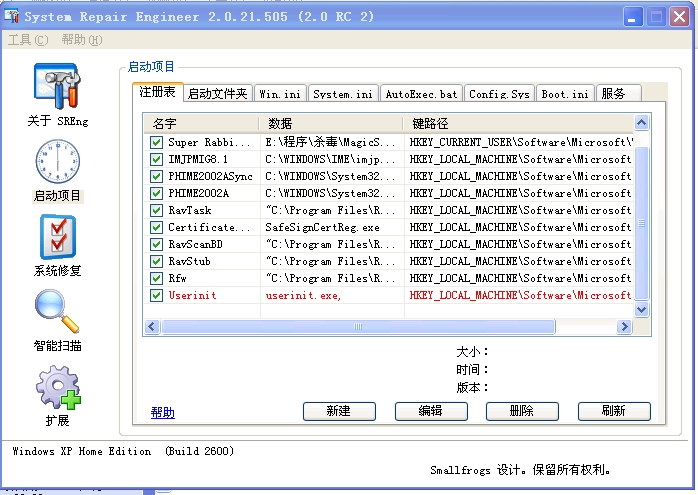 [PID: 1140][E:\程序\杀毒\sreng2\SREng2\SREng.exe]  <Smallfrogs Studio><2.0.21.505>