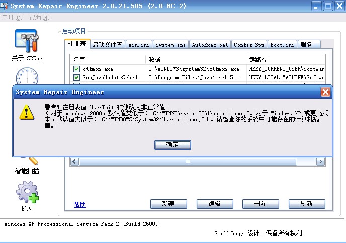 就是用SREng 时 总提示userinit键值错误啊