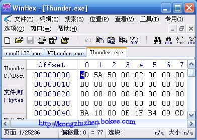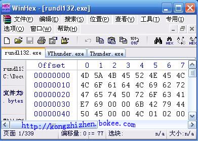将拿到的几个样本文件看了下,其中rundl132.exe为病毒文件,VThunder为感染后的文件,Thunder为原文件。截图如下: