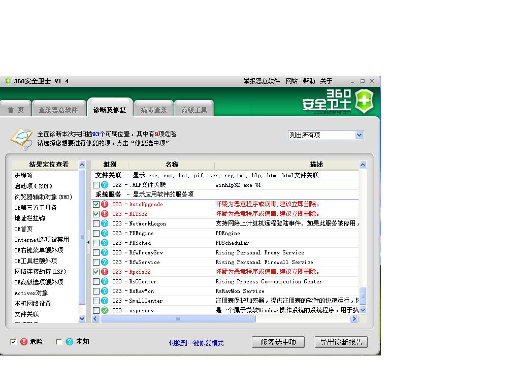 所有的启动项目(包括注册表、启动文件夹、服务等)