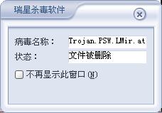 瑞星卡卡安全论坛技术交流区反病毒/反流氓软件论坛 Trojan.PSW.LMir.atc 这个毒怎么杀都杀不了啊~