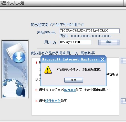 在安装的时候弹出一个对话筐\\\输入序列号和ID都是正确的