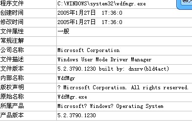 wdfmgr.exe是微软Microsoft Windows media player 10播放器的一部分,而且路径也对是在 C:\WINDOWS\system32 下