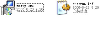应该是病毒,而且只要打开这个文件夹就会中病毒(关键是AUTORUN.INF这个文件),要是有空就把这两个文件压缩,然后发到walkingmu@gmail.com