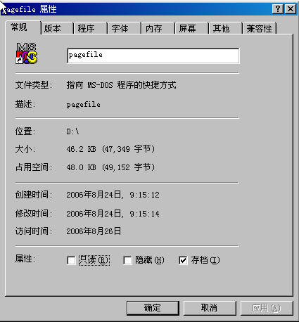文件类型:"指向 MS-DOS 程序的快捷方式"