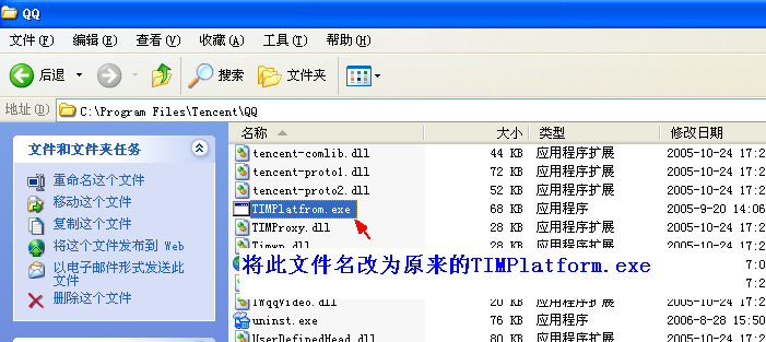 6、恢复TIMPlatform.exe的正常文件名(图6)。