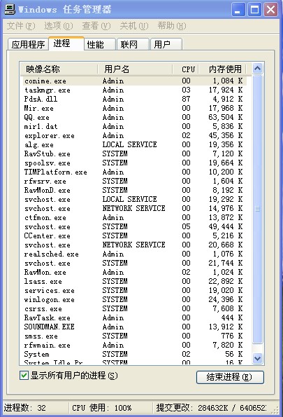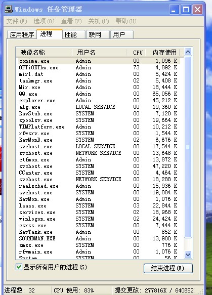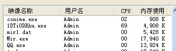 今天,我运行热血传奇游戏,CPU使用达到100%,导致游戏不能正常运行,检查了一下任务管理器的进程程序,每打开一次游戏就会有一个进程CPU达到80以上,而且每次打开游戏那个CPU很高的进程程序名字都不一样.怀疑中了木马病毒之类,用正版瑞星2006,安全模式彻底查杀,没发现任何问题 .下面是几张进程图,望各位朋友,帮鉴定一下什么原因,谢谢了.