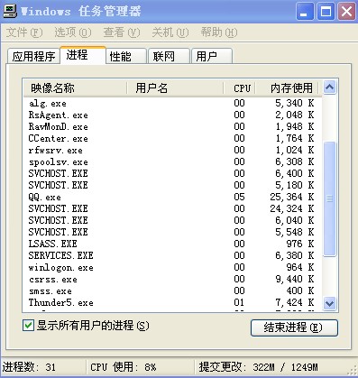 哦对了 我看资源管理器  发现SVCHOST.EXE进程有5个!好象不正常啊!还有资源管理器的用户名也没了啊!   附图如下: