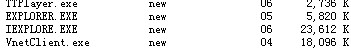 一个试IEXPLORE.EXE(ie浏览器--有个病毒名字也叫这个,如何判别,就看你有没有打开IE。这个进程在不在。)