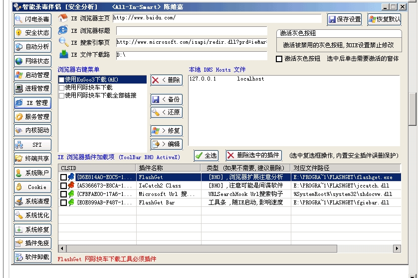 System Repair Engineer (SREng) 2.0 在以往版本的基础上,重点增强了危险性检测和扩展功能,提供了一套全新的系统扫描、配置功能,并提供了对第三方插件支持。