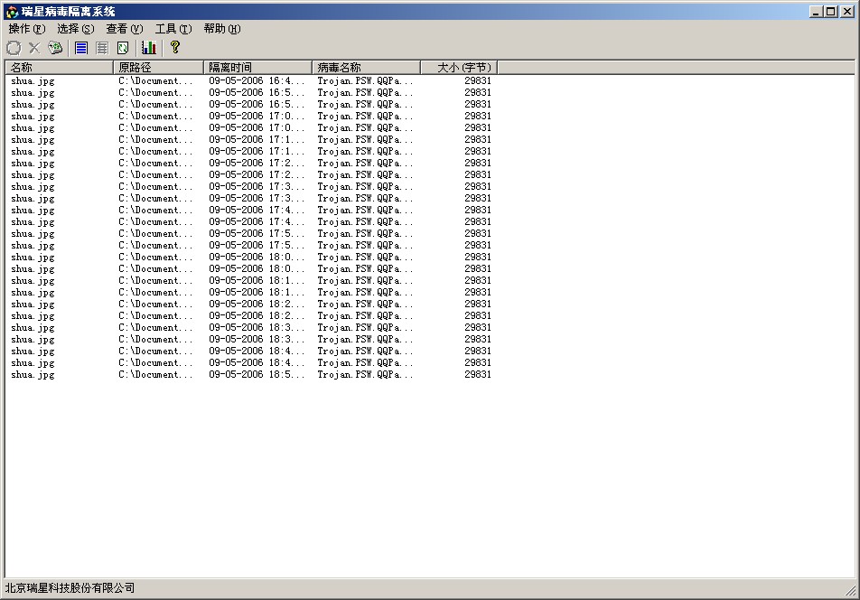 我就是升级瑞星后,瑞星才老提示的,只要我在网毒就会一直弹出,在病毒隔离区一直出现下去