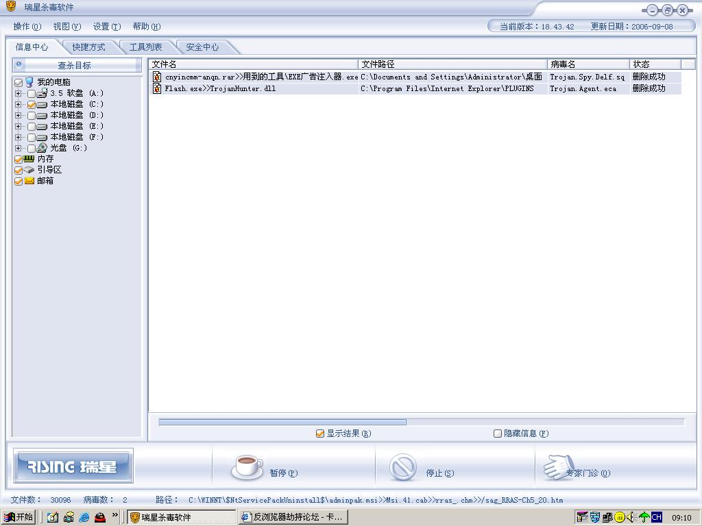 我刚才升级了病毒库。杀毒发现internet explorer里面带有一个flash.exe文件,删除了。等下看看还有没有上面那种现象。