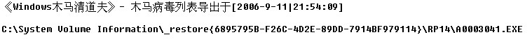 至于那个木马,关闭系统还原后再打开,就没了。
