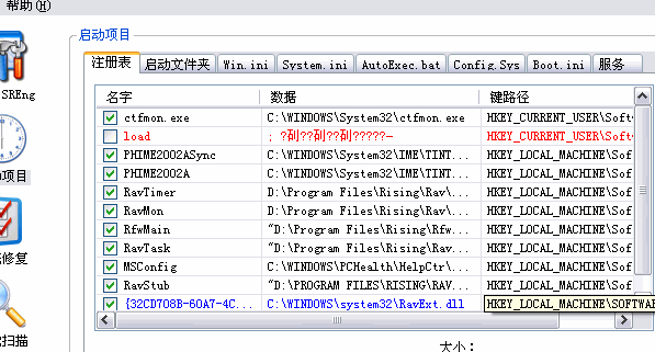 System Repair Engineer提示"警告:注册表值load被修改为非正常值(默认值是空)。请检察你的系统中可能存在的计算机病毒。你可以编辑这个健值并清空里面的内容。"