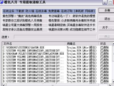 用橙色八月专杀工具杀毒结果