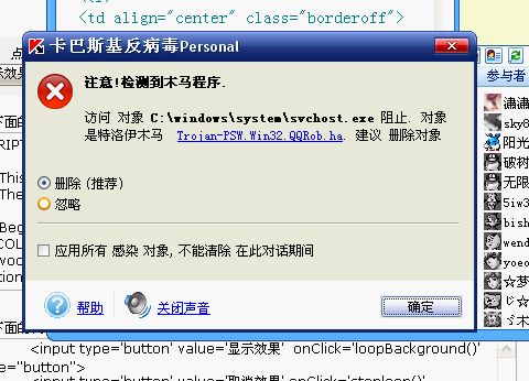 大家好!我打开IE时,有时候没开IE,开机,就自动弹出这个网页,开一个网页,不一会,有时候开开就被这个网站强制性替换http://mm.q-book.com/phpcms/ 这个是个特洛伊木马,我用卡巴5.0检测到,删除好几遍,都不行,最后我的卡巴5.0也不行了,启动不起来了,说内部错误,还要重装,重装后还是不行,我真的不知道怎么办了,希望大家帮帮我!谢谢了!font_size=3]