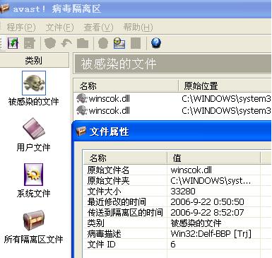 这是我办公室电脑上染上的WIN32:Delf-BBP[Trj]病毒,没装瑞星,用的avast杀软,只能查,不能杀,只有放到病毒隔离区,我把这文件删了,可下一次开机时还在,便不知该如何处理了。请问怎么删除?谢谢!!!