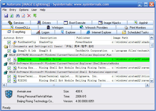 SSM拦截到注册表改动.这个改动可以用Autoruns看到.见图2.