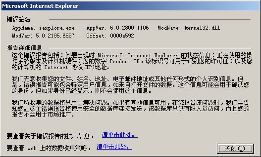 MSIE: Internet Explorer v6.00 SP1 (6.00.2800.1106)